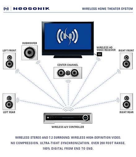 Finally NeoSonik has come up with a solution that is completely wireless and in addition is digital. (This means less interference - the hissy crackly noises that can make you feel like you are sitting in a dollar theatre).