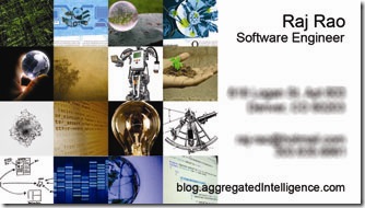 As I don't have a single artistic gene in me that could come up with a cool design or logo - I think this is a cool way to come up with a calling card that is interesting. One could make it a lot more interesting by using their own pictures. The theme in my pictures is - geography, software development, robotics, technology.