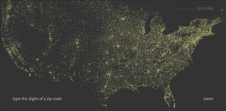 Ever wondered if there is pattern behind the U.S zip code system? Here is a very nice interactive tool that allows you to discover the pattern behind the pin code system. zipdecode | ben fry