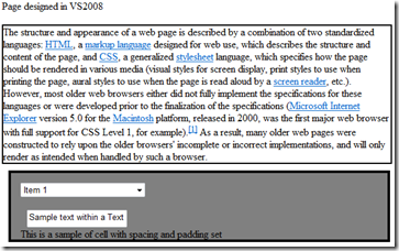 | Web-page in VS2008 after fixes have been applied. | Fixed web-page in IE7 |