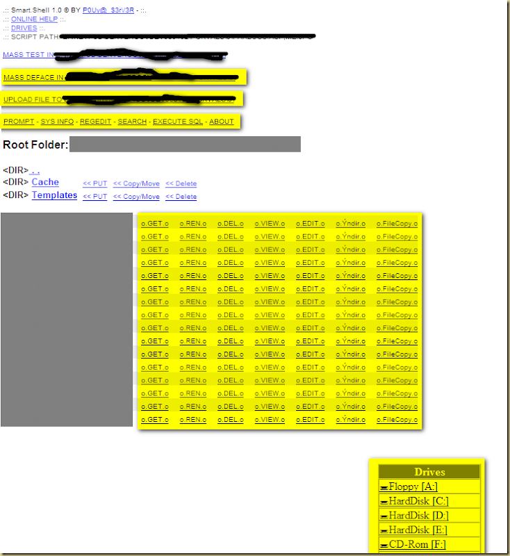 Here is a sample ASP file called the “Smart Shell”, that basically shows the capabilities that an hacker can get over your website: (This kind of an ASP file is also called the 3fexe ASP hack).